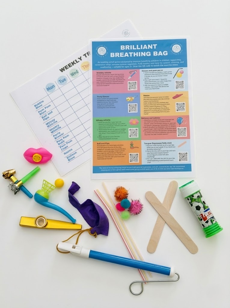 A fun, clinician-designed breathing kit to help children build healthier nasal breathing habits through play. Includes simple, engaging tools and exercises that support oral muscle strength, reduce mouth breathing, and make daily practice easy and enjoyable for ages 3+.