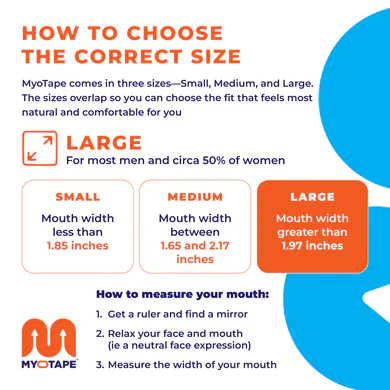 MyoTape comes in Small, Medium, and Large. The sizes overlap so you can choose the fit that feels most natural and comfortable.